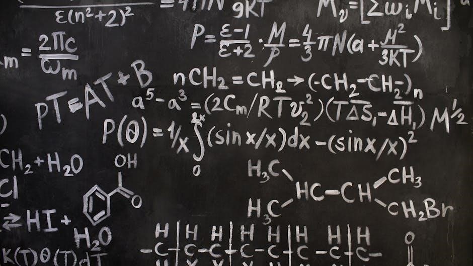 The ACS Organic Chemistry Study Guide thoroughly explores reaction mechanisms and pathways, a critical area for understanding how organic compounds transform. It provides detailed explanations of key mechanisms, such as substitution, elimination, addition, and rearrangement reactions. The guide emphasizes the importance of electron flow and the use of color-coded visual aids to simplify complex reactions. Students learn to predict reaction outcomes and identify intermediates, enabling them to solve problems more effectively. Practice problems and examples are included to reinforce understanding, helping students master these fundamental concepts. This section is vital for developing a deep understanding of organic chemistry and performing well on the ACS exam.