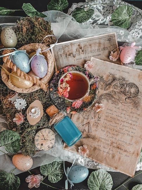 Alice in Wonderland’s timeless charm resonates deeply with tarot enthusiasts, offering a fresh perspective on traditional tarot symbolism. The deck’s whimsical illustrations and beloved characters, such as Alice and the Mad Hatter, create a unique connection, making readings feel both familiar and imaginative. The guidebook enhances this experience, providing insightful interpretations that bridge the story’s themes with tarot wisdom. This blend of fantasy and intuition makes the Alice in Wonderland Tarot a cherished tool for both personal growth and creative exploration in modern tarot practices.