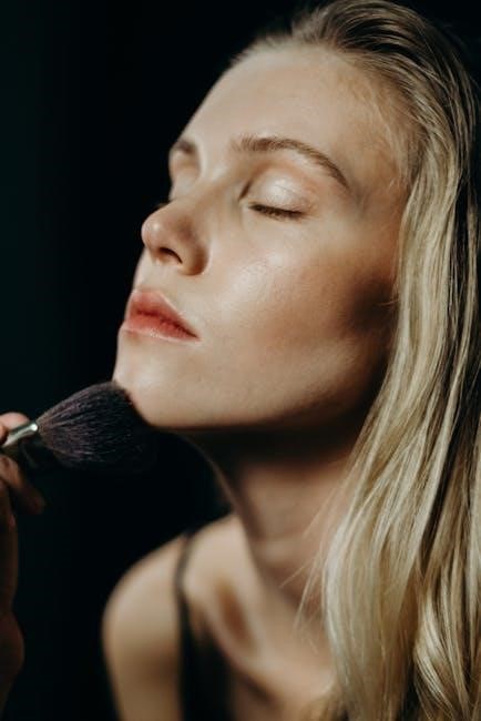 For a more sculpted look, apply a small amount of blush along the cheekbones and blend upward toward the temples․ Use light, sweeping motions to diffuse the color, ensuring no harsh lines remain․ This method adds depth and dimension to the face while maintaining a subtle, effortless appearance․