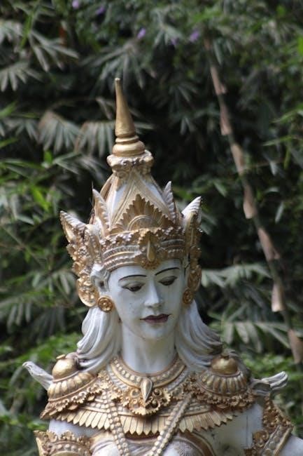 The pantheon of Theros includes powerful deities, each with distinct domains and influences. Ephara, the god of cities, oversees urban development and progress. Heliod, the radiant sun god, embodies light and justice. Purphoros, the god of fire and the forge, inspires creativity and destruction. Nylea, the huntress, governs the wilderness and the cycle of life and death. Keranos, the storm god, commands the skies and the chaos of nature. Each deity’s domain reflects their personality and role in shaping the world. Their influence extends to mortals through divine favor, granting followers unique abilities and shaping the destiny of Theros. These gods are central to the setting’s lore and gameplay mechanics.