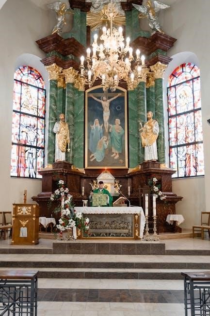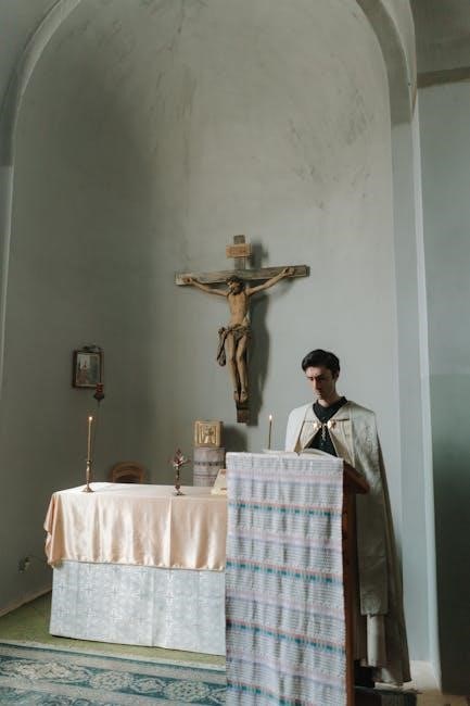 The priest’s intercession after Holy Communion is a powerful prayer for the congregation, seeking God’s grace and mercy. It emphasizes the priest’s role as a mediator, praying for the spiritual growth, protection, and needs of the faithful. This intercession often includes petitions for healing, strength, and guidance, reflecting the community’s reliance on divine providence. The priest’s prayers are inspired by sacred texts and the Church’s traditions, fostering a sense of unity and shared devotion among the people. This practice underscores the priest’s pastoral care and the communal nature of Eucharistic worship.
