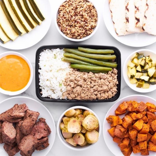 Semaglutide meal plan PDFs emphasize lean proteins, non-starchy vegetables, and healthy fats to maximize satiety and support weight management effectively.