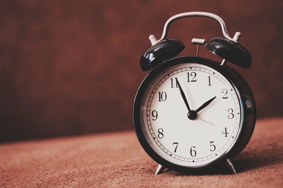 Pay close attention to the 12/24-hour format option, ensuring your preference is selected. Some models may feature an automatic date adjustment function, while others require manual updates. Confirm the correct time and date display after adjustment to avoid alarm discrepancies. Refer to the manual’s diagrams for a clear visual guide during this crucial setup phase.