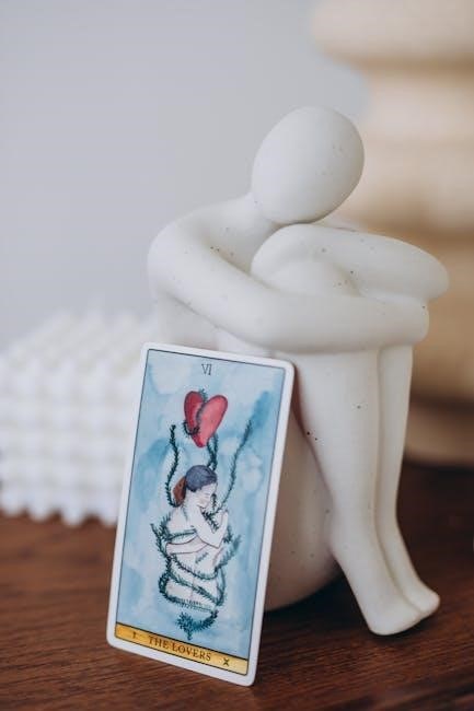 Reading tarot combinations involves interpreting how multiple cards interact to reveal a deeper narrative. Each card influences the others, creating a layered meaning that goes beyond individual interpretations. For example, the “Lovers” card paired with the “Magician” might suggest a harmonious relationship supported by personal empowerment. Context and intuition are crucial, as combinations can amplify or modify meanings. A tarot card meanings PDF often includes examples of common combinations, helping readers understand how cards collaborate to tell a story. This skill enhances readings, allowing for more nuanced and personalized insights. By mastering tarot combinations, readers can uncover complex truths and offer meaningful guidance tailored to individual circumstances.