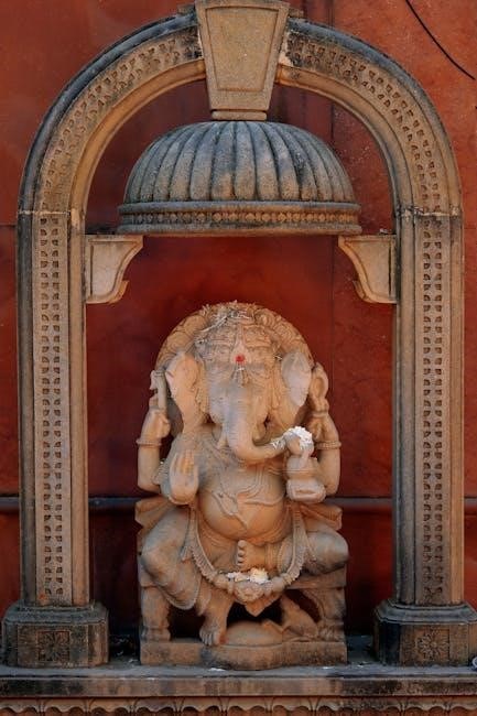 The Vinayaka Ashtothram holds profound religious and cultural significance in Hindu tradition, particularly among devotees of Lord Ganesha. It is an integral part of worship rituals, offering a deep connection to the deity. The 108 names encapsulate Ganesha’s divine attributes, making it a revered text for spiritual practices. Culturally, it is widely recited during festivals like Ganesh Chaturthi and in daily puja ceremonies, fostering a sense of community and devotion. The Telugu version ensures accessibility for Telugu-speaking devotees, preserving its cultural heritage. Chanting the Ashtothram is believed to invoke blessings, prosperity, and the removal of obstacles, making it a cornerstone of Hindu religious and cultural life.