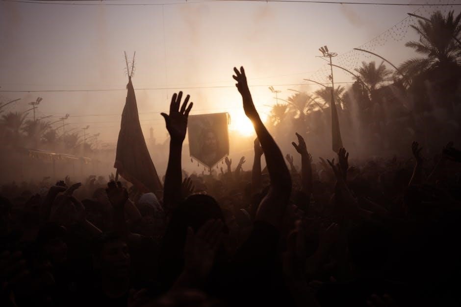 Ziyarat Ashura fosters unity and solidarity among Shia communities worldwide. Its recitation strengthens collective faith and promotes a shared spiritual experience, transcending geographical boundaries. The PDF format ensures accessibility, enabling widespread dissemination and shared practices. By honoring Imam Husayn’s sacrifice, believers unite in their commitment to justice and righteousness. This collective remembrance fosters a sense of belonging and strengthens communal bonds. The prayer’s universal themes inspire compassion and moral integrity, creating a harmonious and morally upright society. Through Ziyarat Ashura, Shia communities reaffirm their unity, drawing strength from their shared heritage and spiritual connection to Imam Husayn’s legacy.